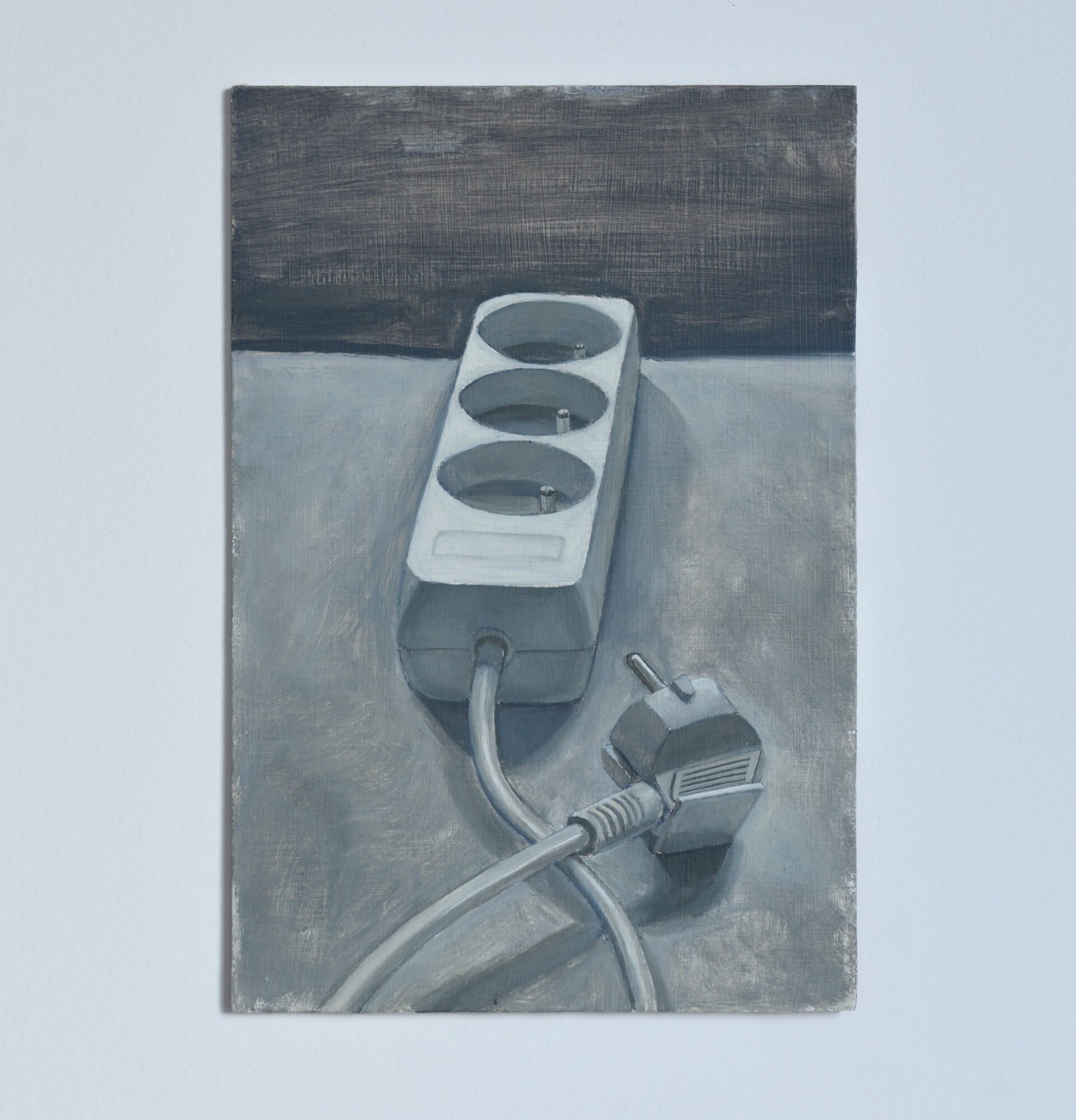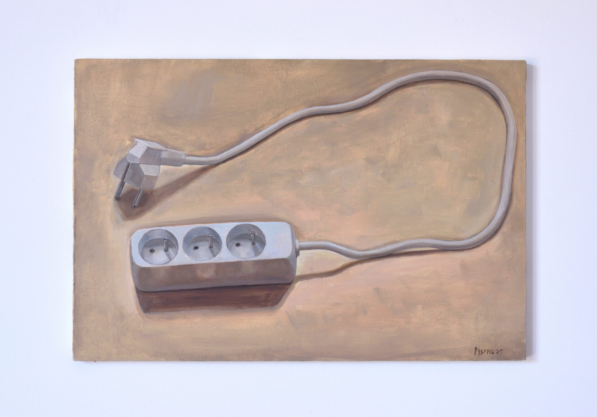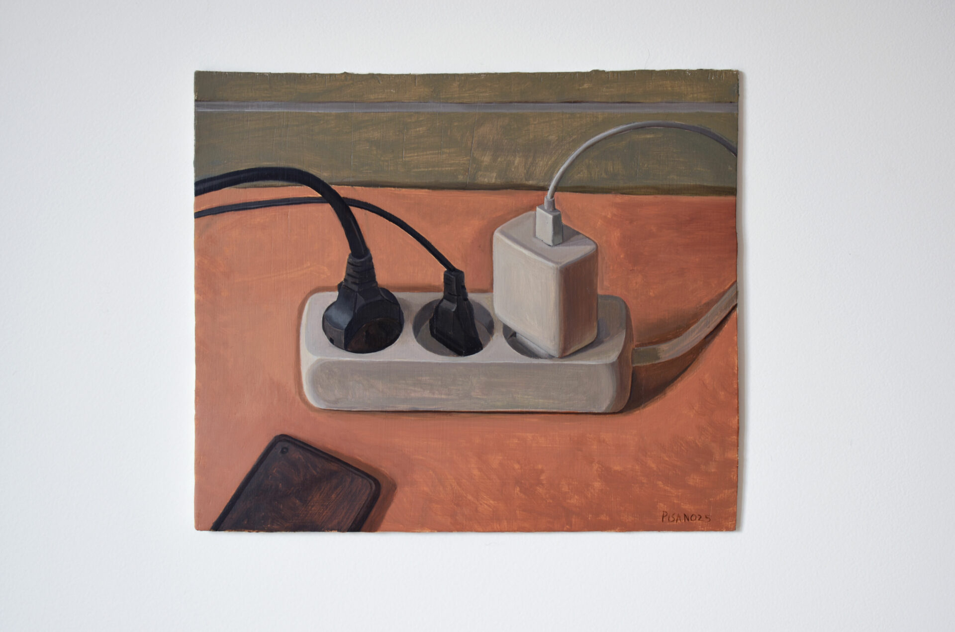 Multiprise solitaire, Huile sur mdf, 24,7 x 37 cm, 2025